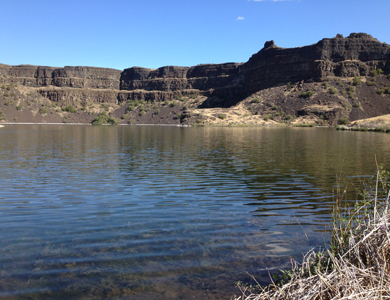 Sun Lakes State Park has a few different lakes within the park boundaries. On Sunday, we hiked along the Deep Lake Trail which was about 2 to 2.5 miles round trip. It goes right along the lake and is an easy hike. There is an opportunity to do some cliff diving or jumping off the cliff edge but we didn’t do it this trip. Perhaps next time we can jump off some basalt rock cliffs into the water below, have a scary monster grab us and drag us under.