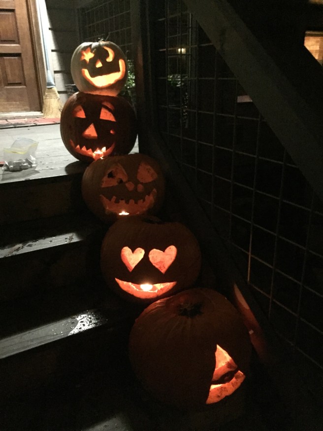 Now the pumpkins are carved and ready to be kicked in by some teenager’s shoe on Halloween tomorrow night. We strive to make it a pumpkin smashing good time!